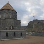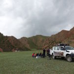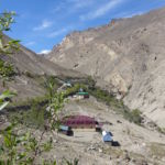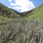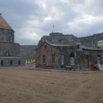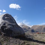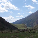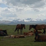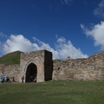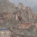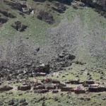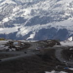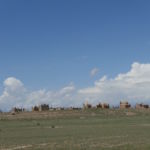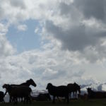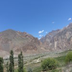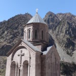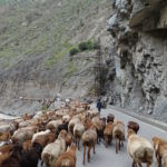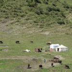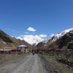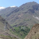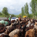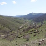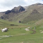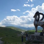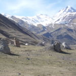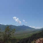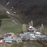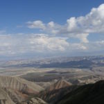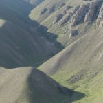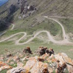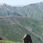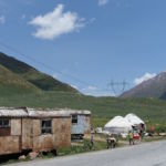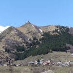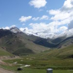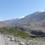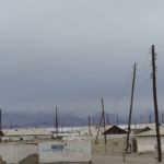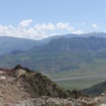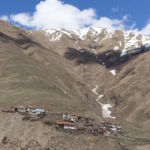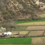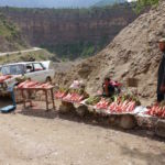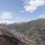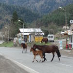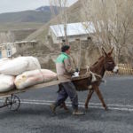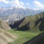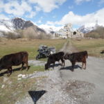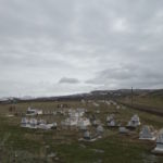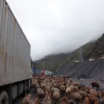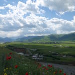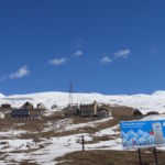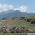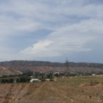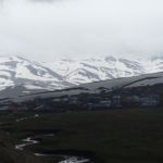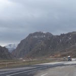 La strada sale e ben presto all’orizzonte si profilano le cime incappucciate di neve. Presagio di temperature meno gradevoli e anche di un paesaggio assai grigio che il sole non riesce a rallegrare. Come se fossimo saliti di un gradino, ci troviamo su di un nuovo altopiano con pochi segni di vita. In un paesino ai lati della strada, usata come parcheggio per numerose macchine, un nugolo di gente (quasi tutti uomini) probabilmente riunita per un funerale.