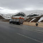 Percorriamo una semi-autostrada con pochissimo traffico, salvo per i camion a cinque assi, stracarichi che quello con le cipolle che sembrano doversi staccare da un momento all’altro.