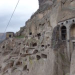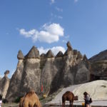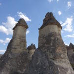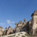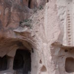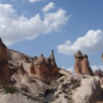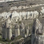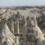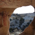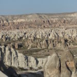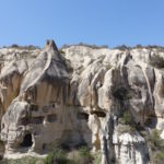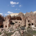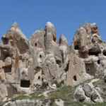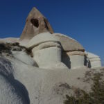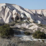 La zona qui attorno fa veramente impressione: non pare esserci limite alle bizzarrie della natura che in milioni di anni ha fatto lavorare le sue forze, vento, acqua, sabbia, ecc., per plasmare un ambiente vulcanico e trasformarlo in qualcosa di fiabesco. I primi insediamenti datano di 8000 anni a.c., ma poi sono stati i monaci ortodossi a creare un vero e proprio miracolo con monasteri e centinaia di cappelle letteralmente scavati nella roccia. In seguito le costruzioni sotterranee – vi sono dei veri e propri reticoli – sono servite anche alla popolazione che ha dato luogo ad un’architettura razionale che ha trovato epigoni fino ai nostri giorni. Ma queste costruzioni hanno avuto anche una funzione protettiva: servivano come nascondigli contro gli aggressori.