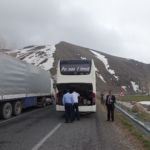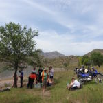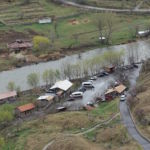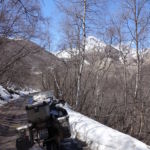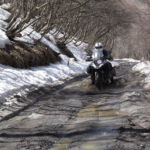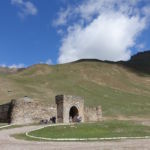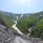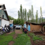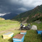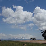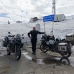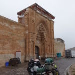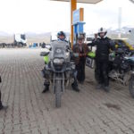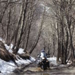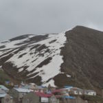 La strada ritorna a salire e la temperatura si adegua, qua e là si fanno vive le prime chiazze di neve, rimasugli di un inverno non ancora a riposo. La cima del passo è a 2100 metri e come si addice ad ogni turista bisogna fermarsi. C’è una postazione, verosimilmente degli addetti alla strada, e subito esce un ragazzo che gironzola attorno alle moto e poi ci invita a bere il ciai. Credo sia contento di vedere qualcuno. Dopo aver preparato il thè, tira fuori lo smartphone con il traduttore inglese-turco. Così scambiamo qualche parola. La strada continua per una lunga vallata su cui si affaccia qualche paesino, letteralmente incollato sui pendii in parte ancora innevati. Poi siamo di nuovo sull’altipiano e arriviamo a Erzerum, non prima di aver notato gli alberi che offrono ospitalità ai corvi e alle gazze: ci sono gli alberi multi- e quelli monofamiliari…