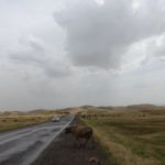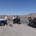 Intermezzo I. Wir machen hier erstmals mit der amerikanischen Polizei Bekanntschaft. Ariadne hat einen Stopp übersehen und merkte nicht, das von einer Seite ein Sheriffwagen nahte. Es dauerte nicht lange und hinter uns ertönte kurz die Autosirene bei gleichzeitigem Aufflackern von Blau- und Rotlicht. Wir halten an und bereiten uns mental vor… nur ruhig bleiben! Die zwei Sheriffs überraschen uns: Sie sind besonders freundlich, nehmen auf unseren ‚Touristenstatus’ Rücksicht, ‚belehren’ uns in knapper und angenehmer Weise darüber, dass es eigentlich um unsere Sicherheit geht und verzichten auf die Busse von über 100 Dollars… Wir lernen auch einiges über die Kontaktstrategie einer Patrouille: Sie nähern sich von hinten und bleiben 1-2 Schritte hinter uns, sodass wir uns leicht drehen müssen. Das Motorrad darf nicht auf den Seitenständer abgestellt werden, sondern muss ausbalanciert bleiben!