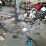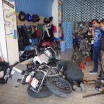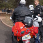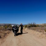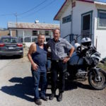 Etwas traurig lassen wir in Orange/LA Sally und Wayne und fahren wieder Richtung Osten in Richtung Santa Fe, New Mexico. Wir besuchen den Joshua National Park sowie Petrified Forest, der uns einerseits eine schöne Vegetation andererseits bezaubernde Farben in den 225 Millionen Jahre alten Bäumen bietet. Zwischendurch halten wir in Flagstaff an und siehe da, der Zufall will es, dass wir Christa treffen. Ich hatte Christa aus dem Thurgau während der Reisevorbereitung angeschrieben, um Informationen zur Verladung des Motorrads von Vladivostok nach Vancouver zu bekommen, da, wie man mir gesagt hatte, sie diese bereits hinter sich hatte. Sie hatte mir geantwortet und seither hatten wir keinen Kontakt mehr… Christa ist mit einer alten Suzuki unterwegs, die den Geist nicht aufgibt… Sie hat eigentlich nur die Ferien zur Verfügung, so fährt sie einfach während 1-2 Monaten und stellt das Motorrad irgendwo unter, um ein Jahr darauf wieder weiterzufahren. So hat sie ganz Asien bereist, Kanada und jetzt die USA. Wir verbringen einen schönen Abend zusammen. Anderntags muss sie zum Service, zu einem alten Mechaniker, der mit seinem ‚gun’ im Halfter daher kommt. Es ist gut gekommen… Weiterhin: Good luck Christa!