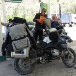Ich hatte Albanien von den Bildern aus der Fähre in Erinnerung: graues Land ohne eine besondere Vegetation. So ist es auch. Der Frühling hat noch Mühe, der Landschaft Leben einzuhauchen und so fahren wir durch lange endlose Täler und Hochebenen, die nicht besonders attraktiv sind und wo die Armut an den wenigen Höfen entlang der Strasse ins Auge sticht. Allerdings ändert sich dieses Bild je länger wir nach Osten in Richtung Kossovo vordringen. Die Strasse ist nicht besonders gut und man weiss nie, ob hinter einer Kurve ein Loch wartet, sie ladet jedoch zum Fahren ein und führt uns jetzt auch durch einige Wälder die da und dort ein Dörfchen frei geben. Und siehe da, in einem dieser Weiler ist ein Fest (oder eher eine Beerdigung?) im Gange. Die Leute müssen von überall her gekommen sein und bilden eine lange Schlange zum Ort des Ereignisses. Auch hier fehlen einige schwarze Mercedes nicht. Vermutlich hat Albanien die höchste Dichte an schwarzen Mercedes: Ob Schrott aus Deutschland oder neu (getönte Fenster haben etwas Mafiöses an sich…) spielt keine Rolle. Offensichtlich muss der Stern auf der Motorhaube eine besondere symbolische Anziehungskraft haben. Ja, die Statussymbole… Der alte Enver Hoxda, der Albanien von der Welt isoliert hatte, muss sich ja ständig um Grab umdrehen. Nach mehrstündiger Fahrt kommen wir zur Kossovogrenze. Die Beamten bedeuten uns, dass die gründe Karte nichts wert ist… und wir müssen eine Versicherung abschliessen. Immerhin reichen 10 Euro und schnell sind wir auf dem Weg zur Heimat von Alexander der Grosse. Der Verkehr nimmt zu, Skopje naht, die kyrillische Schrift ist wieder in… und wir haben Glück: Das Hotel liegt an der Einfahrtsstrasse. Beim Versorgen der Motorräder in der Garage werden wir von einem gutmütigen korpulenten Türken, der im Hinterhof Kaffee schlürft durchaus herzlich empfangen. Er hat in Deutschland studiert, ist erfolgreicher Geschäftsmann und hat nicht nur Lebensweisheiten sondern auch so manche Wundergeschichte zu erzählen… Wir sehen hungrig aus und dies ermöglicht uns, durchaus freundschaftlich von den Geschichten Abschied zu nehmen…
