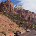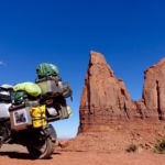 Il giorno seguente ci fermiamo a Flagstaff, dopo una lunga tappa senza stimoli particolari. Il caso vuole che qui, in uno dei soliti motel, incontriamo una ragazza turgoviese che sta girando mezzo molto con una vecchia Suzuki. Il fatto sorprendente è che durante la preparazione del viaggio avevo ricevuto il suo indirizzo e, sapendo che era stata a Vladivostok, le avevo inviato una mail chiedendole informazioni per l’invio della moto verso l’America! Lei fa più o meno due mesi all’anno in moto durante le vacanze, da sola. Poi lascia la moto dove è arrivata, rientra a casa a lavorare, e l’anno dopo riparte. Così ha fatto tutta l’Asia, il Canada e ora gli USA. Gira con quasi nulla…, il suo equipaggiamento a confronto con il nostro non è solo spartano, è quasi inesistente.
