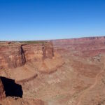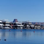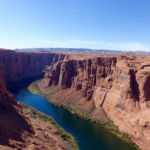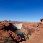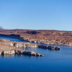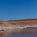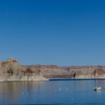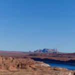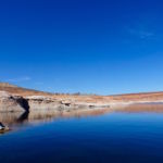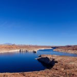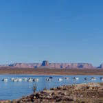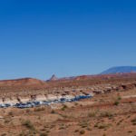 Es ist irgendwie fabelhaft… Anders kann man es kaum bezeichnen. Wir lassen das Monument Valley hinter uns und möchten eigentlich unserer Erlebniswelt etwas Ruhe gönnen, es kommt aber anders… Page ist ein Dorf, das aus der Siedlung der Arbeiter entstanden ist, die den Staudamm des Lake Powell bauten. Abgesehen von einem Kohlenwerk ist es heute zu einem reinen Touristenzentrum geworden. Gut betuchte Amerikaner kommen von weit weg mit ihren Booten hierher, wenn sie sie nicht schon hier ‚parkiert’ haben, um die Faszination dieses in tausenden von Seitenarmen verzweigten Sees erleben zu können. Und tatsächlich die Farben sind schlicht einmalig: Wo ist sonst ein derart intensives Blau, des Himmels und des Wassers, zu erleben, das von einem schmalen Streifen Erde nur ganz knapp getrennt ist…