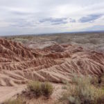 La tappa d Gallup a Santa Fe ci fa attraversare un paesaggio affascinante, sulle orme della vecchia Route 66. Ci aspettavamo la noia deserto e della prateria, invece ci ha sorpreso un paesaggio altalenante con molti colori, le ‘mese’ rosse ornate qua e la dal giallo degli alberi che ancora resistono al temperature che di notte si abbassano. Poi c’è il treno che ci accompagna: inverosimili 170 vagoni che, senza particolare fretta, trainati e sospinti da 5 locomotive, tagliano la prateria. Fermarsi e percepire il loro rumore assordante da pochi passi fa accapponare la pelle…