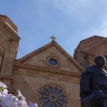 Santa Fe! Die Hauptstadt von New Mexico ist eine schlicht unamerikanische Stadt in Amerika. Alles ist irgendwie anders hier in der königlichen Stadt des heiligen Glaubens des heiligen Franziskus von Assisi, dem die Kathedrale gewidmet ist. Die heilige Messe wird an diesem Sonntag zwar vom Bischof gehalten, die Schar der Gläubigen hält sich allerdings in Grenzen und kann die schöne Kirche kaum füllen. Unter den spätherbstlichen Sonnenstrahlen scheint ohnehin alles noch ruhiger zu und her zu gehen. Die wenigen Touristen schlendern über die sympathische zentrale Plaza und durch die umliegenden, unaufgeregten Gassen, angezogen von den vielen Boutiquen, welche Markenkleider und vor allem Juwelen aus der indianischen Tradition anbieten. Auf der Plaza unter den Bäumen verkauft uns Herr ein sympathischer Maler ein Bild. Er heisst Spiess und seine Vorfharen sind im 18. Jah. aus Deutschland eingewandert. Nebenan spielt eine Jazz-Band, und am Abend wird Joan Baez zu Gast sein – leider ist das Konzert ausgebucht…